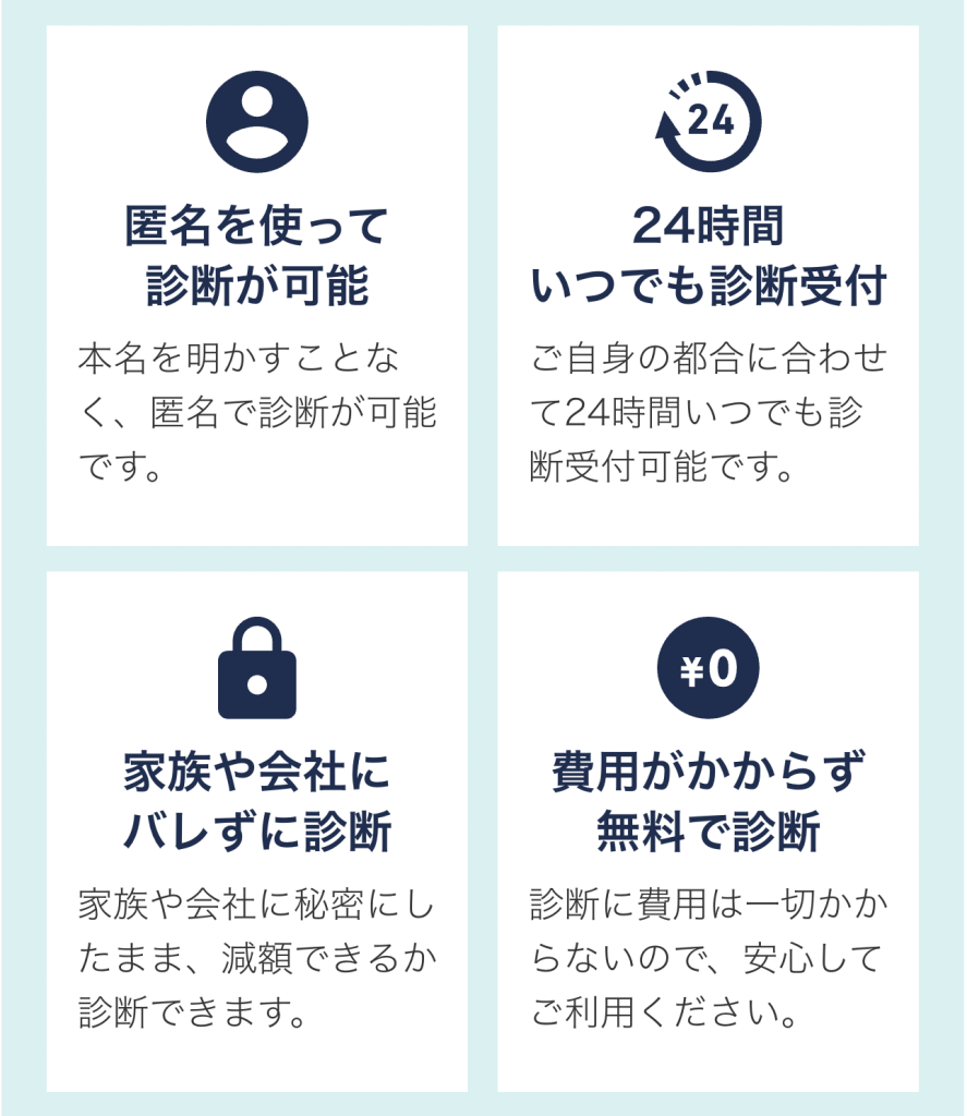 また、家庭があり借金が夫にバレると離婚されてしまうので、バレずに何とかできないか探していたところ、こちらの事務所を見つけました。